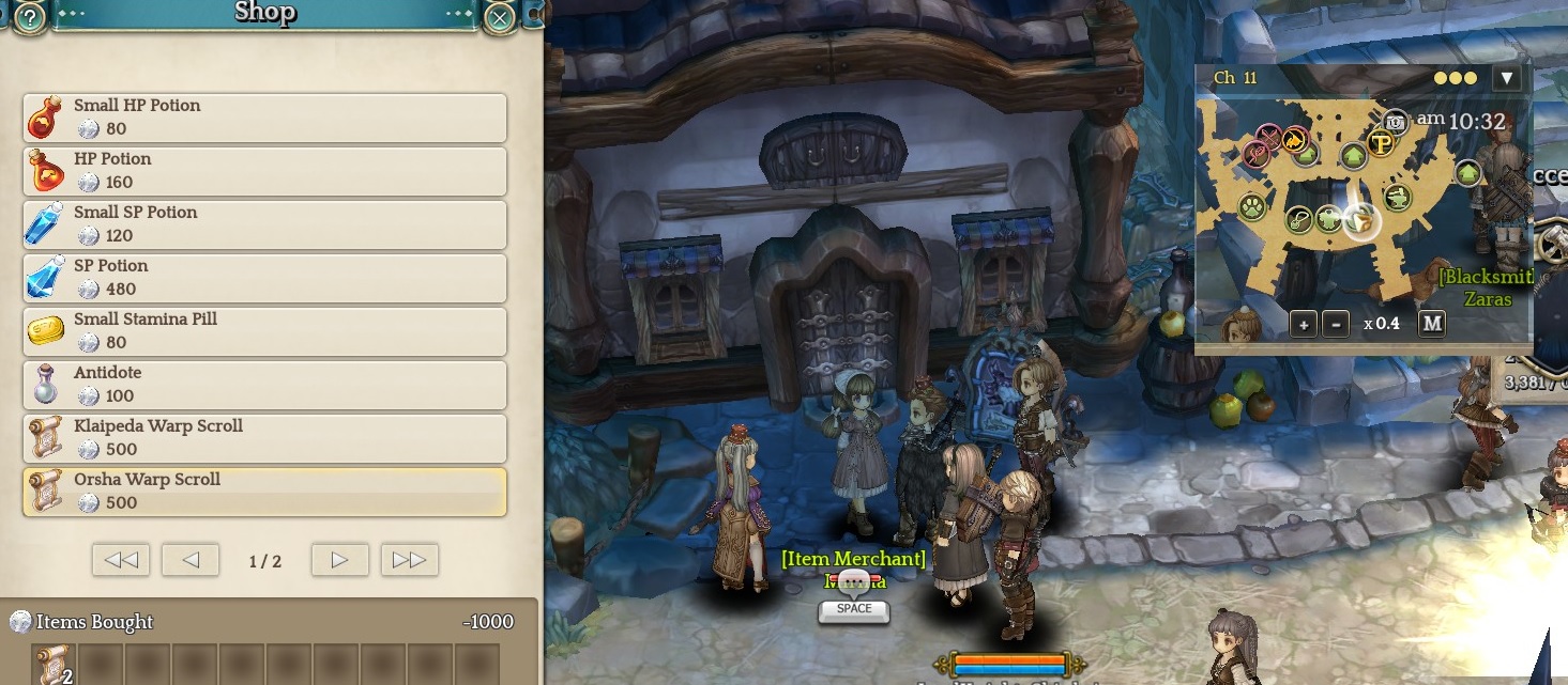 -Teleport kembali ke Klaipeda, lalu beli Orsha warp scroll dari merchant dan teleport lah ke Orsha.