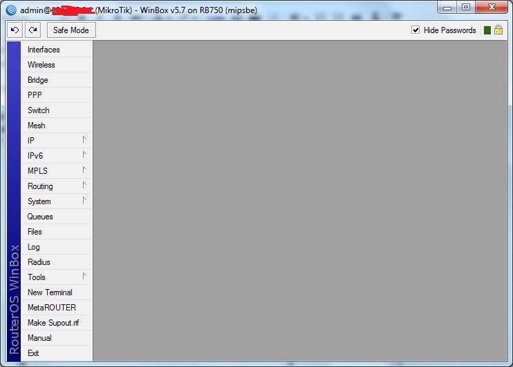 3. WinBox yang sudah connect dengan MikroTik RB750